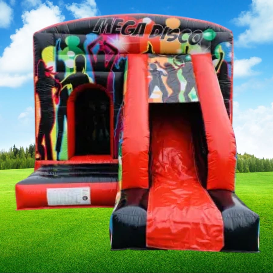 12 x 17 Red & Black Mega Disco Bounce & Slide With Sun/Rain Cover