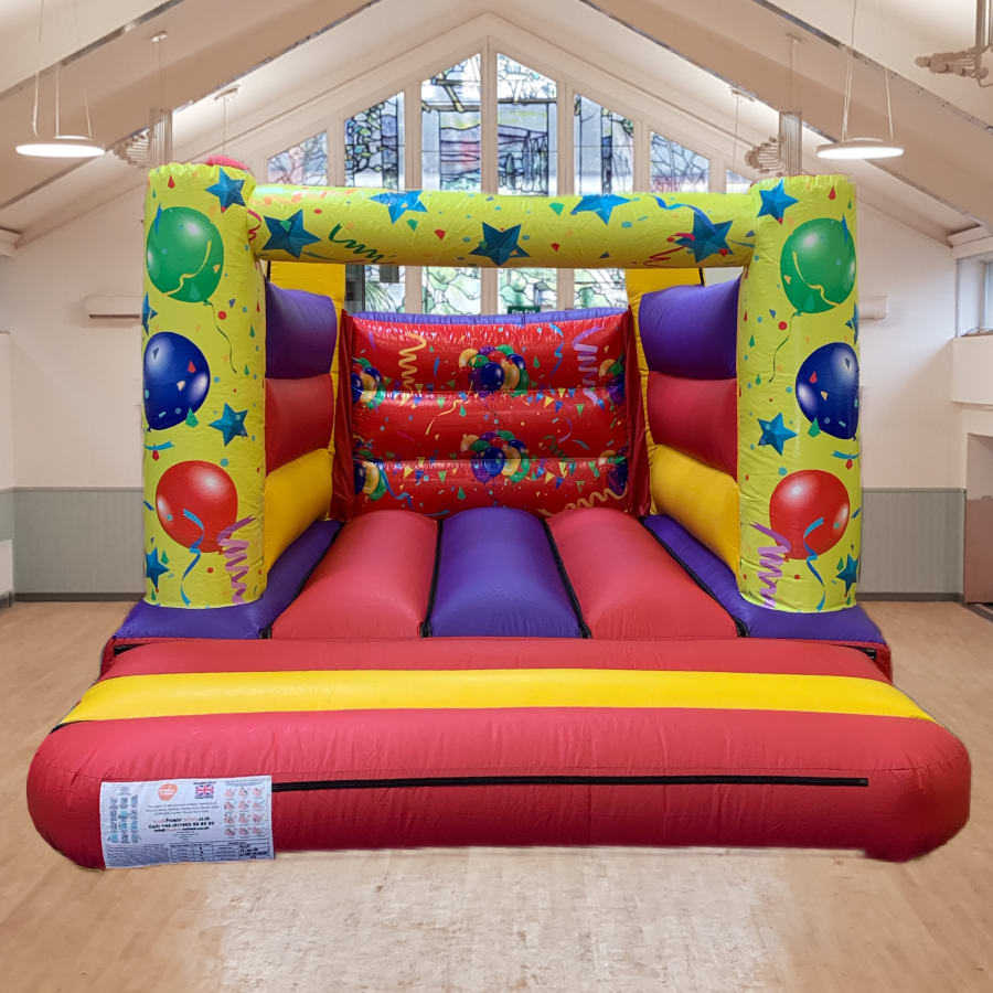 It’s a brightly coloured indoor bouncy castle with an open top making it perfect for indoor hire events.