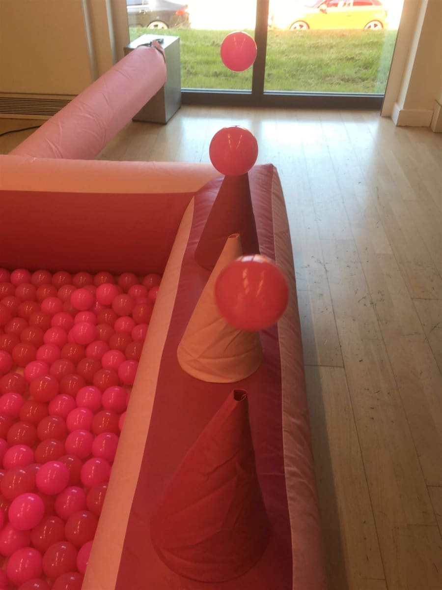 In two tone pink to go with any of our girly castles it’s complete with a whopping 800 balls and with 6 air jugglers.